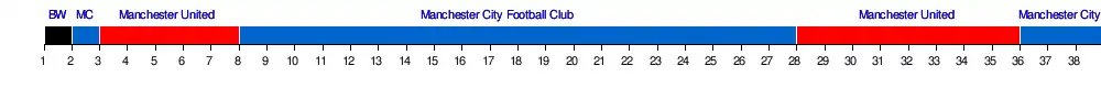 | Manchester City | 1-0 | 4-1 | 3-0 | 2-0 | 2-1 | 2-0 | 3-0 | 3-0 | 1-0 | 3-1 | 5-1 | 3-2 | 3-0 | 3-3 | 4-0 | 3-2 | 4-0 | 3-0 | 3-1 | |