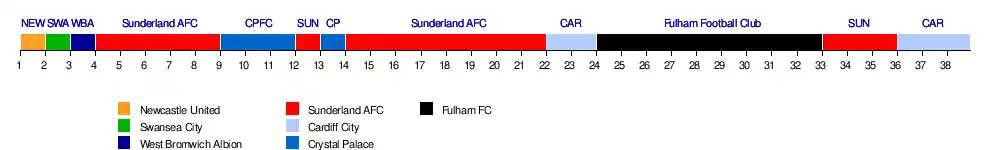 | Sunderland | 14 | 16 | 19 | 20 | 20 | 20 | 20 | 20 | 19 | 19 | 19 | 20 | 19 | 20 | 20 | 20 | 20 | 20 | 20 | 20 | 20 | 19 | 17 | 14 | 17 | 16 | 18 | 16 | 17 | 18 | 18 | 19 | 20 | 20 | 20 | 17 | 14 | 14 | 27 | |
