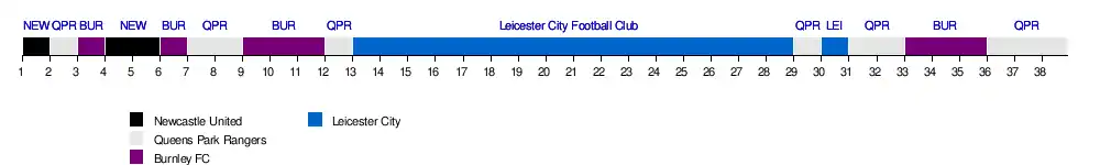 | Leicester City | 1-1 | 1-0 | 2-2 | 1-3 | 0-1 | 2-2 | 0-0 | 1-3 | 0-1 | 5-3 | 3-0 | 5-1 | 2-0 | 0-1 | 0-0 | 2-0 | 1-2 | 0-1 | 2-1 | |
