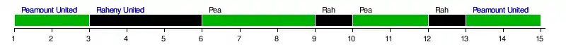 | Raheny United | 2 | 2 | 1 | 1 | 1 | 2 | 2 | 2 | 1 | 2 | 2 | 1 | 2 | 2 | 2 | 5 | 0 |