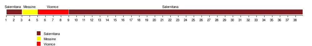 | Salernitana Sport | 0-2 | 1-2 | 1-2 | 1-2 | 0-0 | 1-2 | 2-2 | 2-1 | 2-1 | 0-0 | 2-0 | 3-1 | 0-1 | 1-1 | 0-3 | 2-2 | 1-1 | 1-3 | 0-1 | |