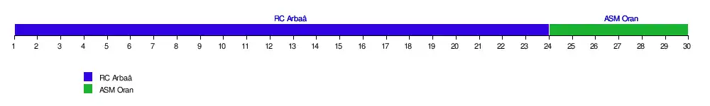 | Résultats (▼dom., ►ext.) | ASMO | CRB | CSC | DRBT | ESS | JSK | JSS | MCA | MCO | MOB | NAHD | RCA | RCR | USMA | USMB | USMH |