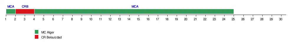| CR Belouizdad | ASO | 2-1 | ESBA | 2-1 | 1-0 | 3-1 | 0-0 | 1-0 | 2-0 | 1-0 | 1-1 | 4-0 | 0-1 | 2-3 | 2-0 | |