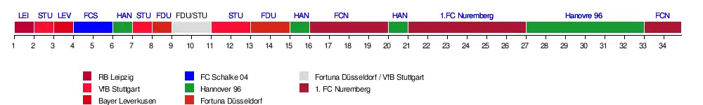 | Schalke | 11 | 15 | 17 | 18 | 18 | 17 | 15 | 16 | 15 | 14 | 14 | 14 | 12 | 13 | 13 | 14 | 13 | 12 | 12 | 12 | 14 | 14 | 14 | 14 | 14 | 15 | 14 | 14 | 15 | 15 | 15 | 15 | 15 | 14 | 0 | 1 | 4 |