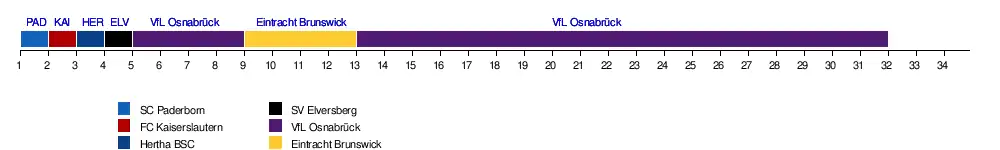 | Paderborn | 18 | 15 | 12 | 13 | 16 | 14 | 15 | 10 | 7 | 8 | 12 | 9 | 11 | 12 | 10 | 9 | 6 | 6 | 7 | 7 | 6 | 6 | 6 | 6 | 6 | 6 | 8 | 9 | 9 | 8 | 7 | |||