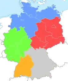 Les cinq divisions actuelles de la Regionalliga.