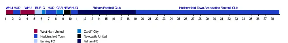 | Huddersfield Town | 19 | 20 | 19 | 17 | 18 | 20 | 20 | 18 | 19 | 20 | 18 | 19 | 15 | 17 | 17 | 18 | 19 | 19 | 20 | 20 | 20 | 20 | 20 | 20 | 20 | 20 | 20 | 20 | 20 | 20 | 20 | 20 | 20 | 20 | 20 | 20 | 20 | 20 | 34 | |