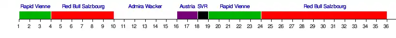 | Red Bull Salzbourg | 2-1 | 2-0 | 6-0 | 0-0 | 0-0 | 1-1 | 1-1 | 1-1 | 3-0 | 2-0 | 3-0 | 2-0 | 0-1 | 3-1 | 2-0 | 0-0 | 2-0 | 2-1 | ||