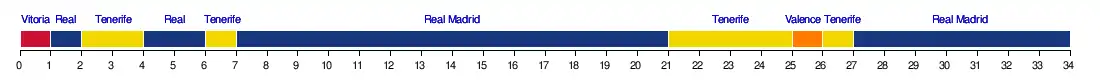 | Real Madrid | 4 | 1 | 3 | 3 | 1 | 1 | 2 | 1 | 1 | 1 | 1 | 1 | 1 | 1 | 1 | 1 | 1 | 1 | 1 | 1 | 1 | 2 | 3 | 2 | 3 | 3 | 2 | 1 | 1 | 1 | 1 | 1 | 1 | 1 |