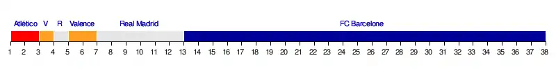 | FC Barcelone | 3-1 | 2-1 | 3-0 | 0-0 | 2-0 | 2-1 | 0-2 | 2-1 | 4-1 | 1-1 | 2-0 | 3-0 | 5-0 | 5-0 | 5-0 | 1-0 | 2-1 | 3-1 | 1-0 | |