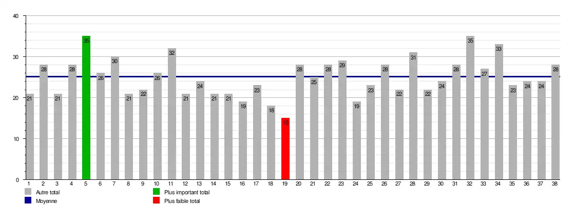 - Journée de championnat la plus pauvre en buts : 19e journée (15 buts).