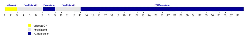 La frise suivante montre l'évolution des équipes ayant successivement occupé la première place :