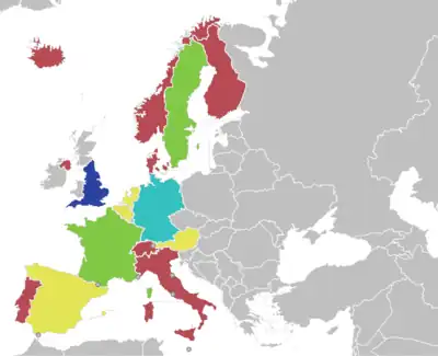 Non-participants : Andorre, Arménie, Bulgarie, Gibraltar, Liechtenstein, Luxembourg et Saint-Marin