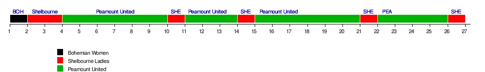 | Shelbourne Ladies | 2 | 1 | 1 | 5 | 3 | 3 | 3 | 2 | 2 | 2 | 1 | 2 | 2 | 1 | 2 | 2 | 2 | 2 | 2 | 2 | 1 | 2 | 3 | 2 | 2 | 2 | 1 |