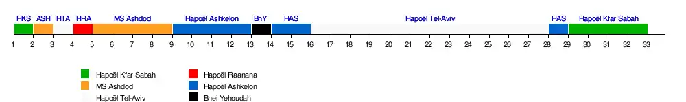 | Hapoël Haïfa | 10 | 7 | 10 | 6 | 4 | 4 | 6 | 7 | 9 | 11 | 9 | 10 | 11 | 9 | 9 | 8 | 8 | 8 | 8 | 8 | 8 | 8 | 8 | 8 | 8 | 8 | 9 | 8 | 8 | 9 | 8 | 8 | ||||||