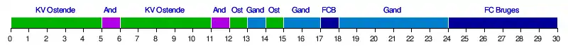 | KV Ostende | 5-2 | 0-2 | 3-1 | 4-1 | 2-1 | 1-0 | 3-1 | 2-0 | 3-2 | 3-3 | 2-1 | 0-2 | 3-3 | 1-2 | 3-0 | |