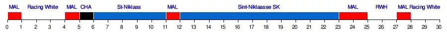 | K. St-Niklaasse SK | 1-1 | 2-0 | 2-0 | 2-0 | 1-2 | 0-0 | 3-2 | 1-0 | 5-0 | 4-3 | 0-1 | 3-2 | 2-2 | 0-4 | 3-1 | |