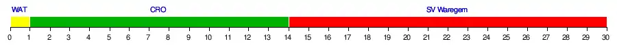 | 1. | SV Waregem | 27 | 38 | 14 | ||||||||||||||||||