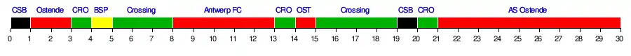 | AS Oostende KM | 2-1 | 3-2 | 0-0 | 1-0 | 4-1 | 5-1 | 3-1 | 3-0 | 1-1 | 3-0 | 1-4 | 4-2 | 1-0 | 6-0 | 2-1 | |