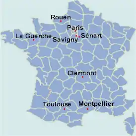 Localisation des clubs engagés dans le championnat.