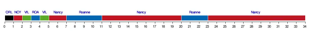 | Résultats (dom.\ext.) | NAN | ROA | CHA | STR | LYO | LEM | CHO | GRA | PAU | DIJ | ORL | LEH | CLE | PAR | HYÈ | BES | BOU | REI |