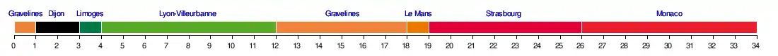| 3 | Le Mans | 76 | 74 | 83 | |||||||||||||||||||