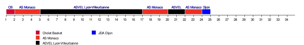 | Cholet | 1 | 7 | 8 | 8 | 7 | 6 | 6 | 5 | 4 | 5 | 6 | 5 | 5 | 5 | 5 | 5 | 5 | 5 | 5 | 6 | 5 | 5 | 6 | 6 | 24 | |||||||||||