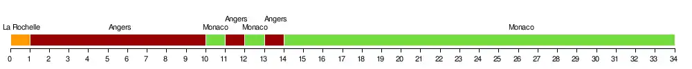 | Angers | 4 | 1 | 1 | 1 | 1 | 1 | 1 | 1 | 1 | 1 | 2 | 1 | 2 | 1 | 2 | 2 | 2 | 2 | 2 | 2 | 2 | 2 | 2 | 2 | 2 | 2 | 2 | 2 | 2 | 2 | 2 | 2 | 2 | 2 | 11 | |