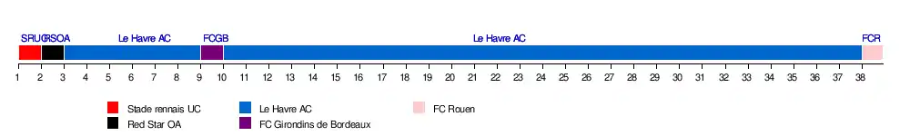 | Stade rennais UC | 3-2 | 2-1 | 3-1 | 3-0 | 0-0 | 2-0 | 4-6 | 2-1 | 3-1 | 2-2 | 2-2 | 2-3 | 2-3 | 2-0 | 2-1 | 5-2 | 0-1 | 1-6 | 3-0 | |