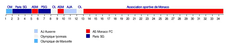 - Note : L'AS Monaco est déclaré champion de France à l'issue de la 31e journée.
