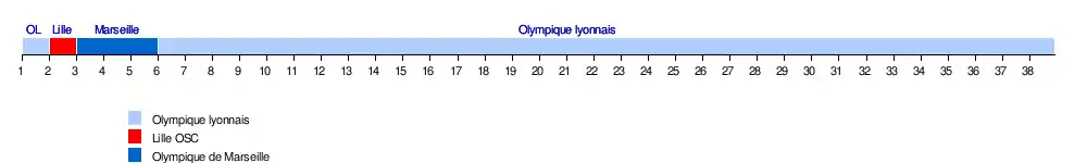 - 23 septembre : à la suite de la première défaite de l'OM face à Nantes, l'Olympique lyonnais prend seul la tête du championnat et ne la quittera plus.
