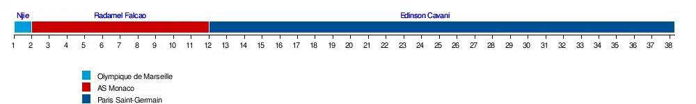 - Plus grande série de matchs sans défaite[20] : 17 matchs pour l'AS Monaco entre les 16e et 32e journées.