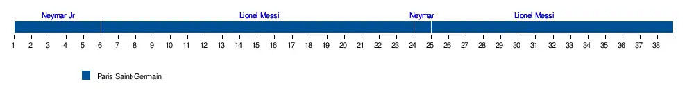 - lors de Olympique de Marseille 0 - 3 Paris Saint-Germain au stade Vélodrome le (25e journée)[13].