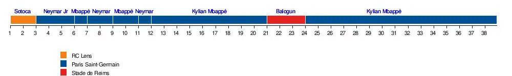 Le Français Kylian Mbappé a presque battu le record du but le plus rapide de l'histoire du championnat (8 secondes) face au LOSC (1-7) à la 3e journée, manquant de peu d'égaler l'ancien joueur Michel Rio qui avait marqué un but en un peu moins de 8 secondes en février 1992[3].
