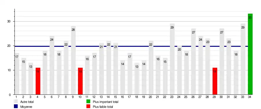 | Villefranche | 13 | 8 | 11 | 11 | 11 | 13 | 13 | 13 | 12 | 12 | 14 | 14 | 15 | 14 | 13 | 12 | 12 | 12 | 13 | 13 | 15 | 14 | 13 | 12 | 11 | 11 | 8 | 7 | 7 | 7 | 9 | 10 | 10 | 12 | 2 |