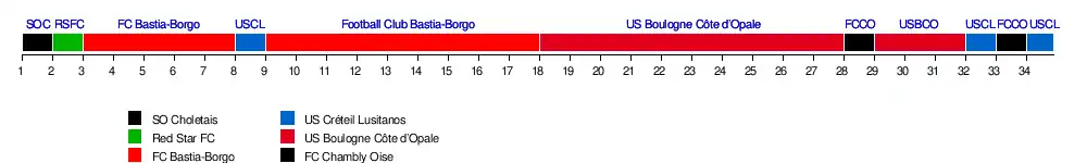 | Bastia-Borgo | 17 | 15 | 18 | 18 | 18 | 18 | 18 | 17 | 18 | 18 | 18 | 18 | 18 | 18 | 18 | 18 | 18 | 17 | 17 | 17 | 17 | 17 | 17 | 16 | 16 | 17 | 17 | 16 | 16 | 17 | 15 | 15 | 15 | 15 | 34 | |