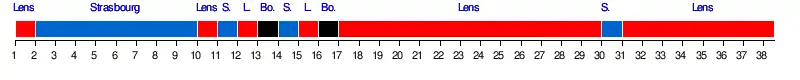 | RC Strasbourg | 3-1 | 2-1 | 2-0 | 1-0 | 1-0 | 2-2 | 2-1 | 2-0 | 0-0 | 0-2 | 1-1 | 0-0 | 1-0 | 5-0 | 3-2 | 1-3 | 4-0 | 0-0 | 2-1 | |