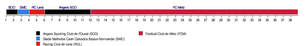 | Angers | 1 | 1 | 2 | 2 | 2 | 1 | 1 | 1 | 1 | 1 | 1 | 3 | 2 | 2 | 3 | 2 | 4 | 2 | 3 | 2 | 3 | 2 | 2 | 2 | 2 | 2 | 3 | 3 | 4 | 3 | 5 | 6 | 5 | 6 | 6 | 7 | 8 | 9 | 28 | - |