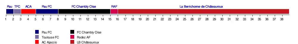 | Pau FC | 0-0 | 2-0 | 3-0 | 1-0 | 1-3 | 1-0 | 2-1 | 3-1 | 0-2 | 0-1 | 2-0 | 1-1 | 4-1 | 1-1 | 1-1 | 0-0 | 0-3 | 0-1 | 4-3 | |