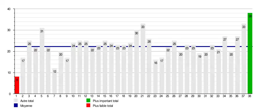 | 18 | Evian TG FC R [n 1] | 39 | 38 | 17 | 0 |