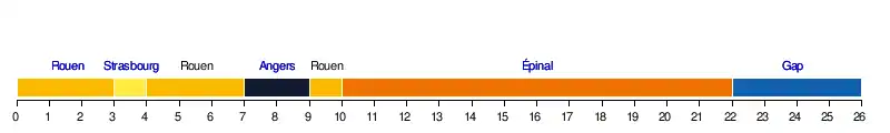 | Épinal | 4-3 | 7-2 | 7-5 | 1-2 | 4-3 Pr. | 5-3 | 5-1 | 5-2 | 4-3 | 6-2 | 5-2 | 3-1 | 4-3 | |