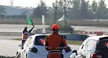 Drapeau vert : indique le départ de la course aux pilotes sur la piste. |