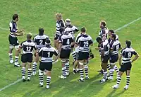 Règles de classement[10] : 1. points terrain (bonus compris) ; 2. points terrain obtenus dans les matches entre équipes concernées ; 3. différence de points dans les matches entre équipes concernées ; 4. différence entre essais marqués et concédés dans les matches entre équipes concernées ; 5. différence de points ; 6. différence entre essais marqués et concédés ; 7. nombre de points marqués ; 8. nombre d'essais marqués ; 9. nombre de forfaits n'ayant pas entraîné de forfait général ; 10. place la saison précédente ; 11. nombre de personnes suspendues après un match de championnat.