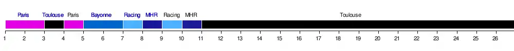 RC Toulon19,05 2 Philippe Saint-André Joe van NiekerkStade Mayol13 700