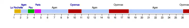 | SU Agen | 10 | 14 | 13 | 13 | 14 | 14 | 14 | 14 | 13 | 13 | 14 | 14 | 14 | 14 | 13 | 13 | 13 | 14 | 14 | 14 | 14 | 14 | 14 | 14 | 14 | 13 |