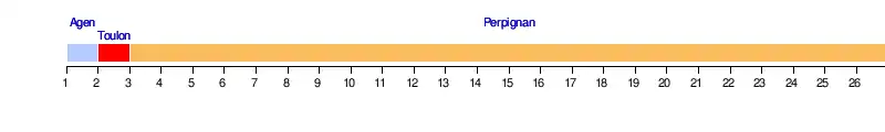 | Perpignan | P | P | P | P | P | P | P | P | P | P | P | P | P | P | P | G | P | P | P | G | P | P | P | P | P | P |