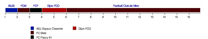 | FC Metz | 2018 | 10e | Stade Dezavelle | 1 500 | 3 | |