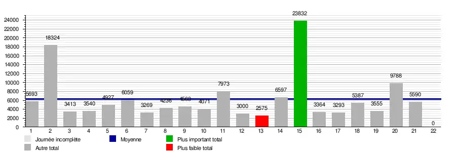 Ce graphique représente le nombre de spectateurs présents dans les stades lors de chaque journée.
