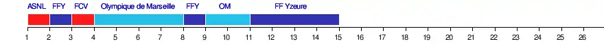 | Olympique de Marseille | 2011 | 2018 | D1 | Stade Roger Lebert | 1000 |