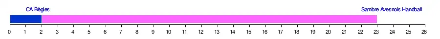 | Sambre Avesnois Handball V | 30-21 | 39-29 | 28-25 | 28-25 | 26-19 | 32-24 | - | 20-14 | 29-24 | 31-23 | 35-27 | 36-21 | |